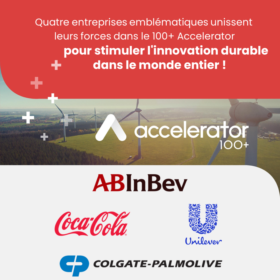 « Nous sommes ravis que The Coca-Cola Company, Colgate-Palmolive Company et Unilever s’associent à nous en tant que partenaires fondateurs de l’Accelerator 100+ », déclare Tony Milikin, chief procurement, sustainability et circular ventures officer au sein d’AB InBev. « L’entreprenariat durable est un entreprenariat intelligent et nous nous efforçons à résoudre de grand problèmes qu’aucune entreprise ne peut solutionner seule. Grâce à notre portée mondiale combinée, nous pouvons accélérer la progression vers un avenir plus durable. »