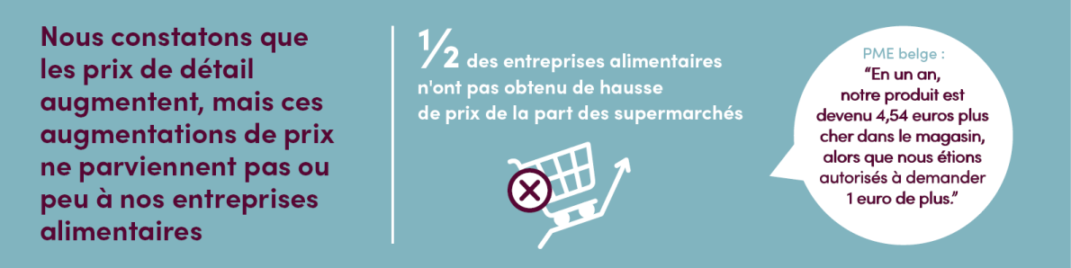 Pour un quart de nos entreprises, leur demande de révision de prix a été refusée. Et le quart restant n’a même eu droit à une réponse ou à une chance de renégocier. Pourtant, de nombreux producteurs constatent que le prix de leurs produits en magasin a beaucoup plus augmenté que ce qu’ils ont obtenu. Il y a donc quelque chose de fondamentalement anormal ici !