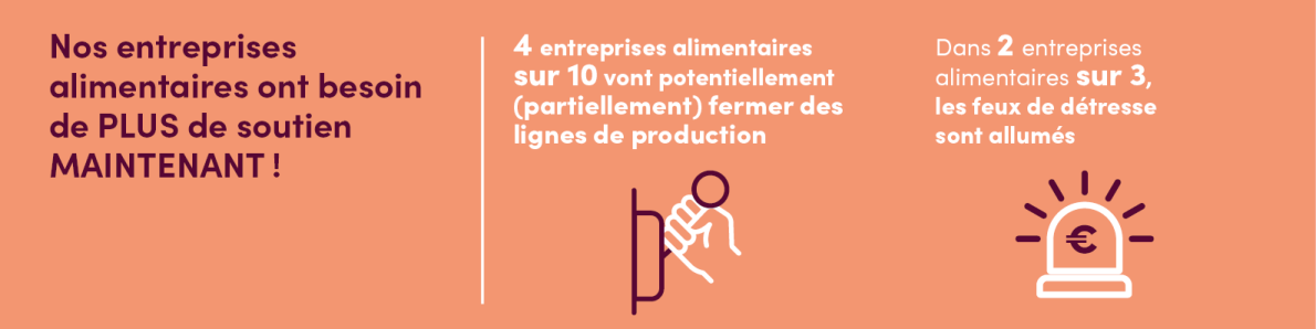 La continuité de notre industrie alimentaire est en jeu. Voulons-nous encore demain une industrie et une chaîne alimentaire belges fortes, des produits alimentaires locaux dans les rayons des magasins et des emplois pour nos 98 000 food heroes ? Lisez notre appel aux responsables politiques et découvrez les témoignages de dix entrepreneurs en cliquant ici