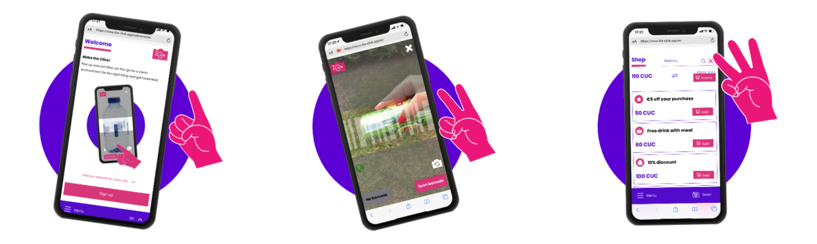Vous avez bien lu, chers déchets sauvages, qu'il s'agisse des actions de Mooimakers et de BeWaPP ou du brand power de nos entreprises : nous mettons tout en œuvre pour vous combattre, et nous utilisons également les nouvelles technologies. Connaissez-vous l’application « The Click » ? Il s'agit d'une application qui permet de scanner les déchets sauvages avant de les jeter à la poubelle et en échange on reçoit des Circular UCoins à utiliser dans les magasins participants mais aussi dans les services communaux. Dans certaines piscines communales, par exemple, vous recevez une carte gratuite de dix entrées.