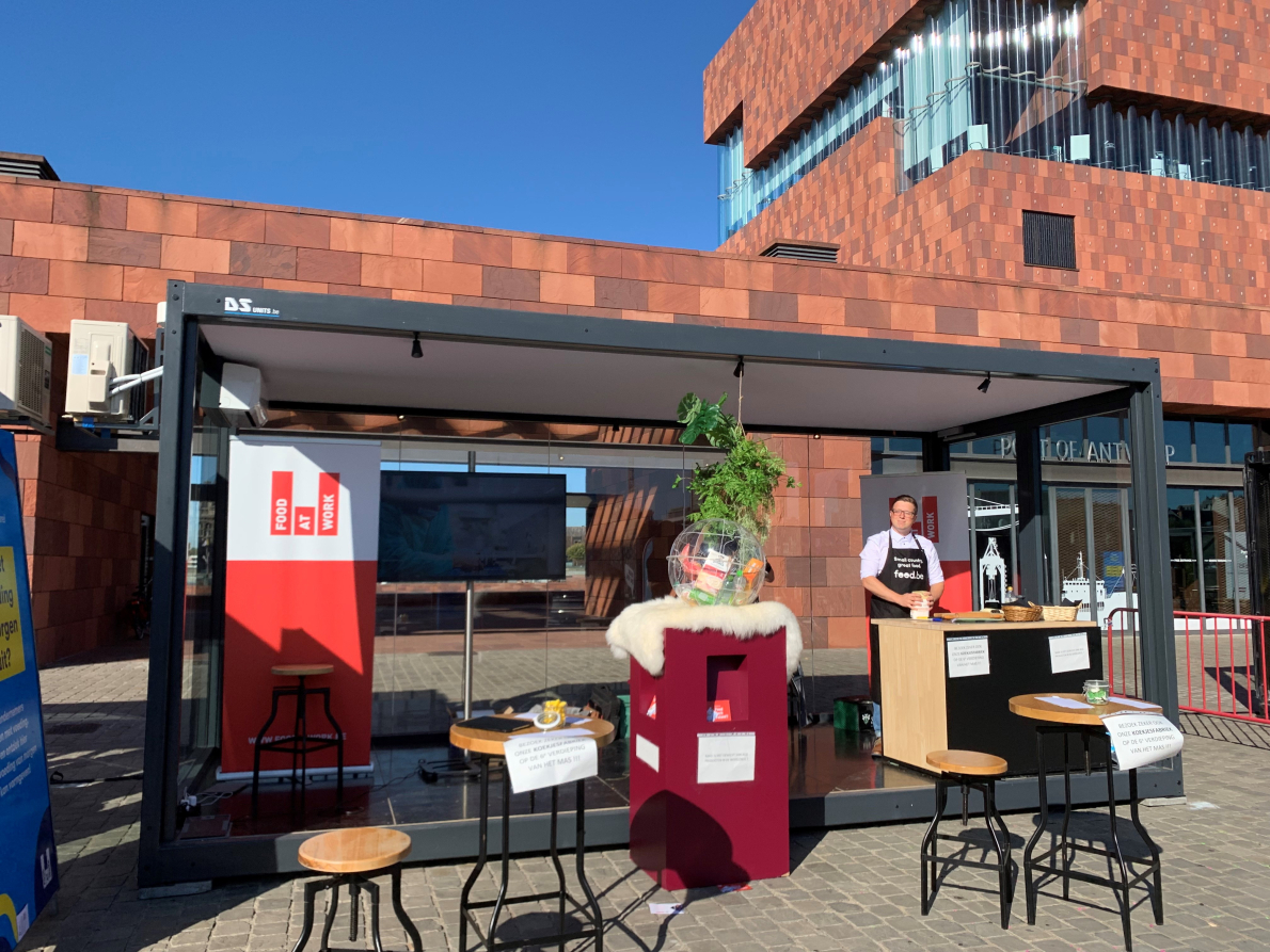 Avec la marque d’employeur Food At Work, Fevia Vlaanderen et Alimento ont donné un avant-goût aux jeunes, au sens propre et figuré, des perspectives d’emplois qu’offre l’industrie alimentaire. Sous la devise « the winner takes it all », jeunes et adultes ont tenté de deviner le poids d’un globe rempli de délices belges dans le Food At Work container branché. De plus, les visiteurs ont aussi eu l’occasion d’y goûter le produit Strativeg : une pâte feuilletée innovante qui contient plus de légumes et de fibres avec laquelle une équipe de la KU Leuven campus Geel a remporté les Food At Work Ecotrophelia Awards.
