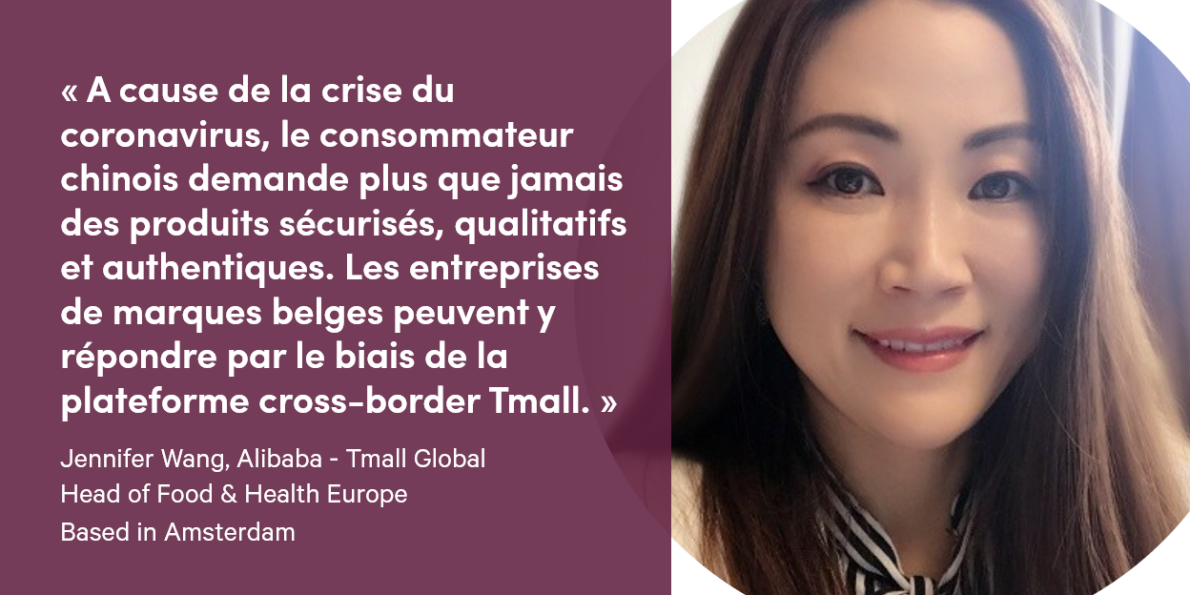 En raison de la crise du coronavirus, les consommateurs chinois demandent plus que jamais des produits sécurisés, qualitatifs et authentiques. De nombreuses entreprises alimentaires ont de grandes ambitions en Chine mais ne savent pas comment gérer ce marché compliqué ni ce qu'il faut faire en premier lieu. « Les entreprises belges peuvent y répondre via Tmall Global, la plate-forme transfrontalière d'Alibaba », explique Jennifer Wang d'Alibaba.