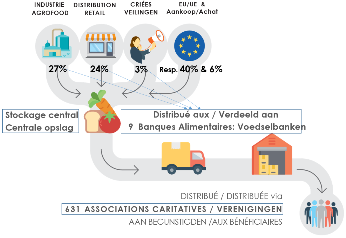 Processus d'approvisionnement des banques alimentaires (Bron: Belgische Federatie van Voedselbanken)
