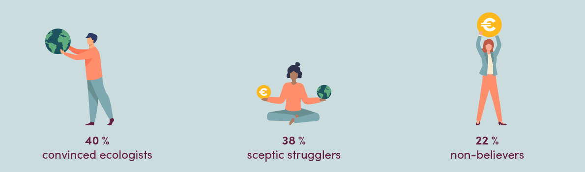 Le deuxième groupe, 22 %, comprend des consommateurs qui ne voient pas vraiment l’urgence de la durabilité et agissent donc de manière plus indifférente à son égard. Entre les deux, 38 % des consommateurs croient en la durabilité, mais estiment qu’ils ne peuvent pas faire grand-chose eux-mêmes. Ils ont donc tendance à être sceptiques quant aux initiatives des producteurs ou des marques. »