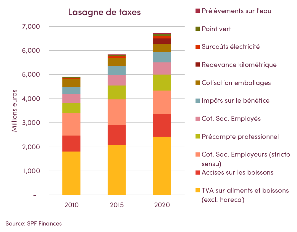 La compétitivité des entreprises alimentaires belges est donc fortement handicapée par cette superposition de taxes.