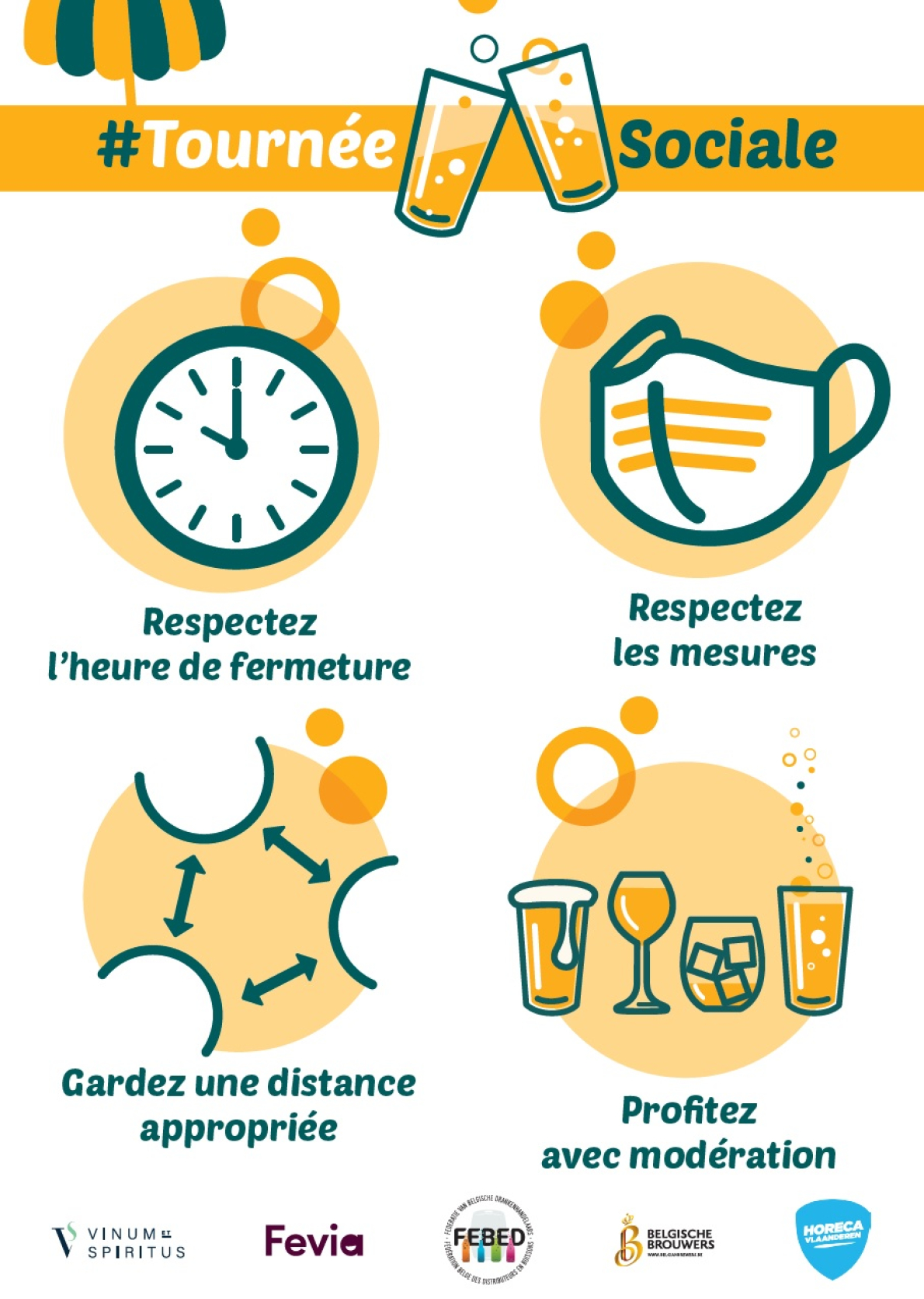 Différents partenaires du secteur des boissons et de l’alimentation lancent une campagne en ligne pour que la réouverture des terrasses se déroule dans les meilleures conditions. Si vous allez en terrasse en respectant les nouvelles règles et que vous partagez une photo d’ambiance avec le hashtag #TournéeSociale, vous aurez peut-être la chance de gagner un cadeau surprise.