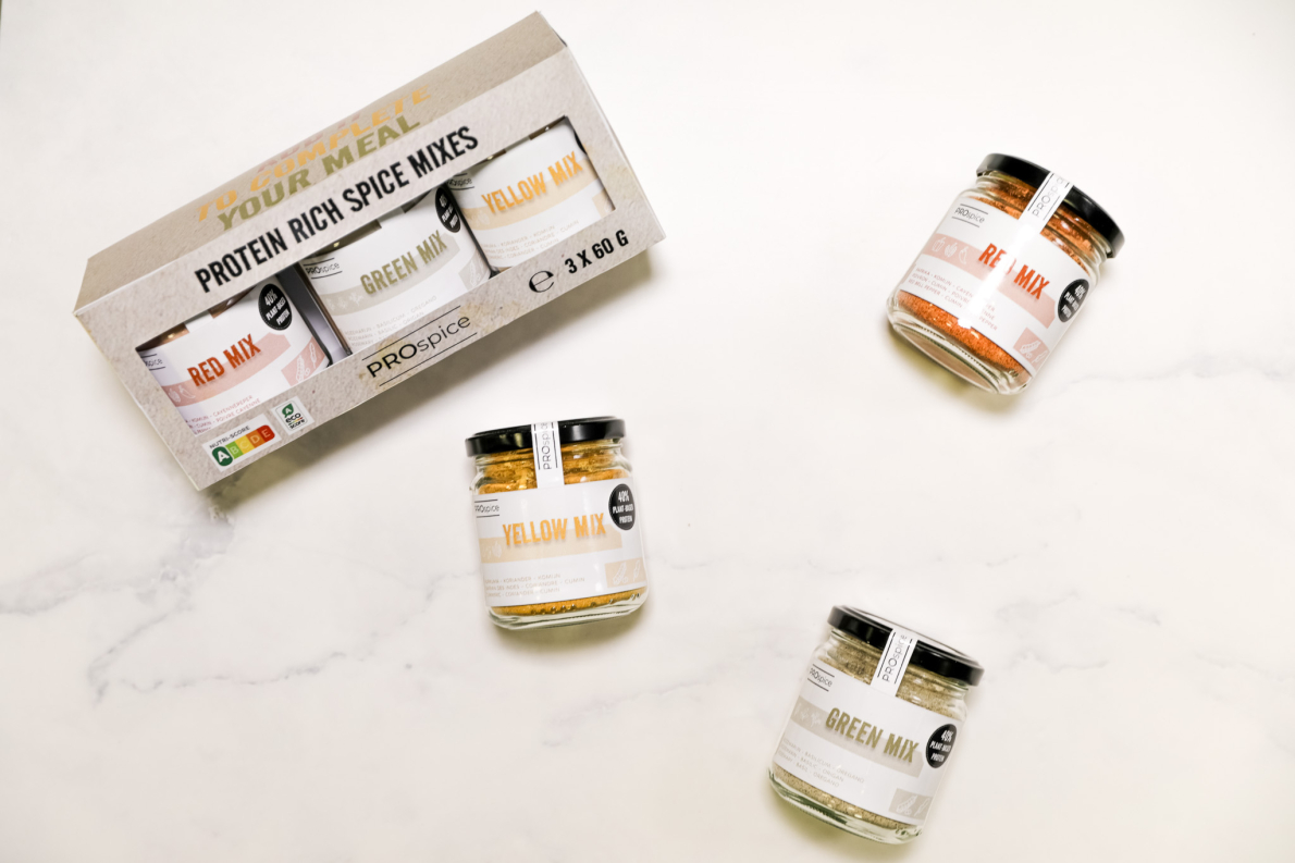 Au menu : crêpes véganes et prêtes-à-manger, garniture riche en protéines à base d'algues et de noix provenant d'huile de noix résiduelle, hash brown à base de déchets végétaux, et mélange d'épices enrichi en protéines végétales.