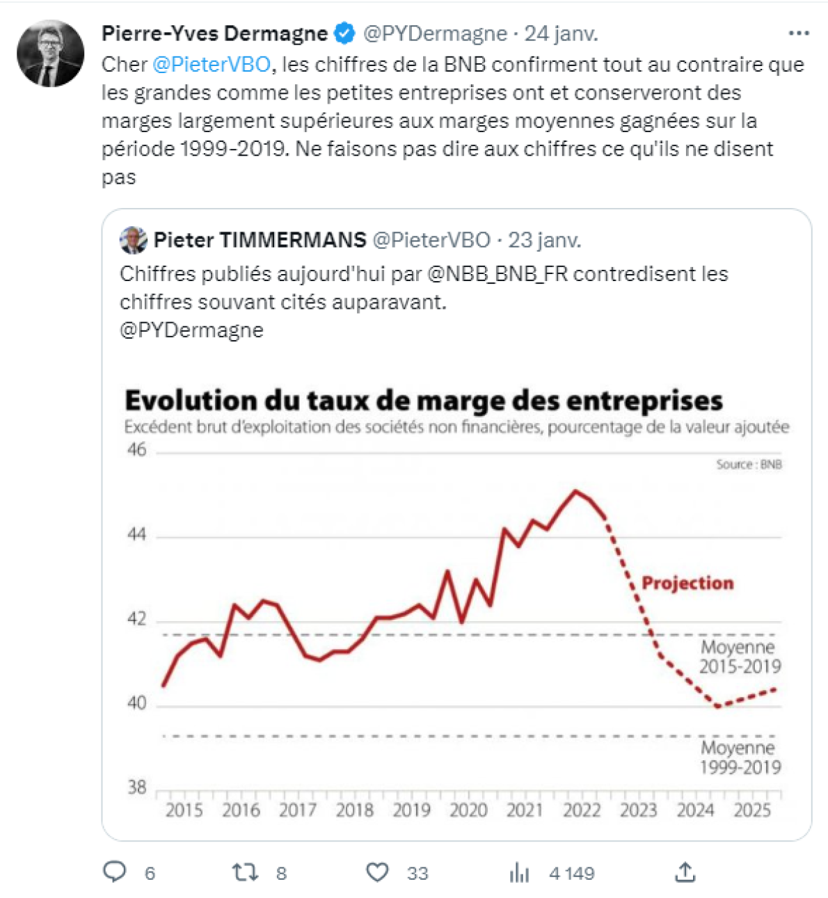 - Bedrijfsmarges: wie heeft gelijk? Minister Dermagne of Pieter Timmermans?