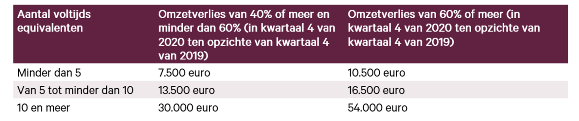 De ‘Tetrapremie’ wordt toegekend per vestigingseenheid (met een maximum van 5 vestigingeenheden per onderneming), maar varieert in functie van het aantal VTE’s en van het percentage omzetverlies van je onderneming.