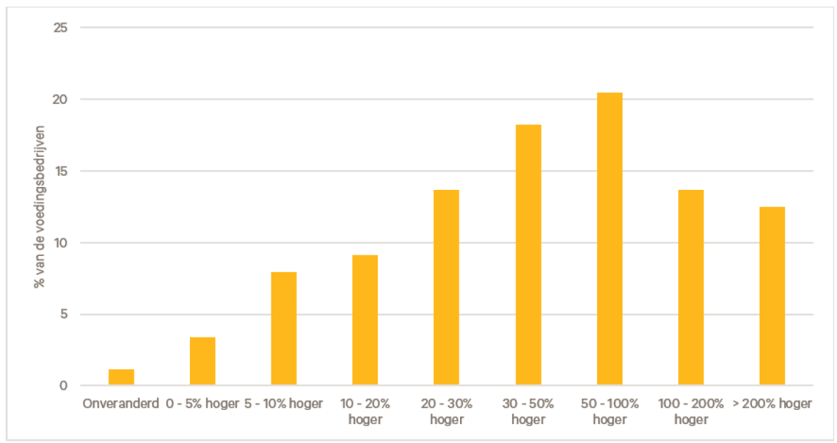 Met een gemiddelde stijging van de inputkosten met 52% in alle sectoren kan worden gesteld dat geen enkele sector gespaard is gebleven. In de top 5 van de meest getroffen sectoren vinden we echter sectoren die in hoge mate afhankelijk zijn van energie en/of voedingsmiddelen (in volgorde: horeca, landbouw, voedingsindustrie, personenvervoer, luchtvaart).