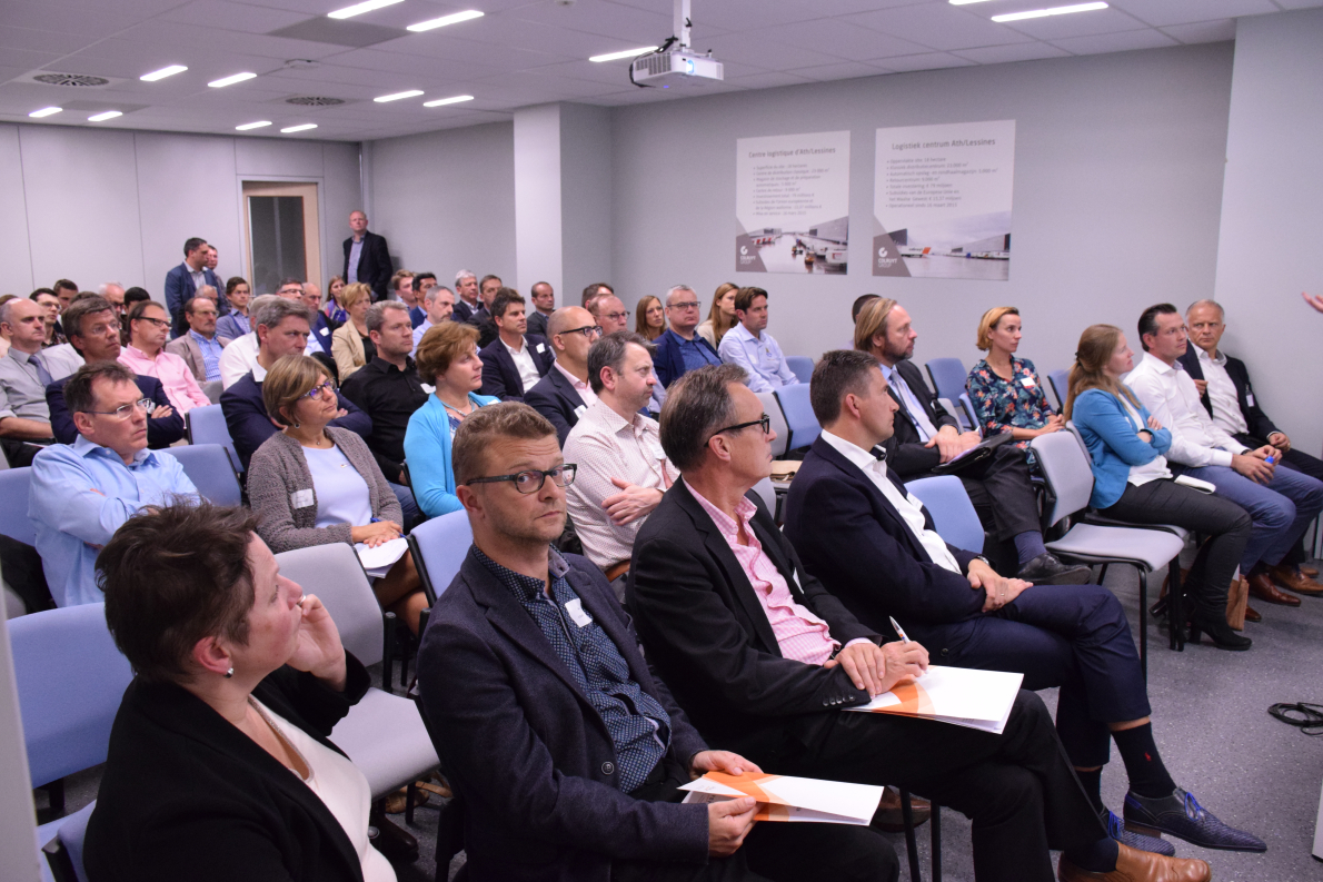 Na het academisch gedeelte volgde een rondleiding in het spiksplinternieuwe distributiecentrum van Colruyt. Het was vooral indrukwekkend om te zien hoe in een hypermodern distributiecentrum de mens nog steeds een centrale plaats inneemt. In het distributiecentrum te Ollignies werken zo maar eventjes 500 mensen.