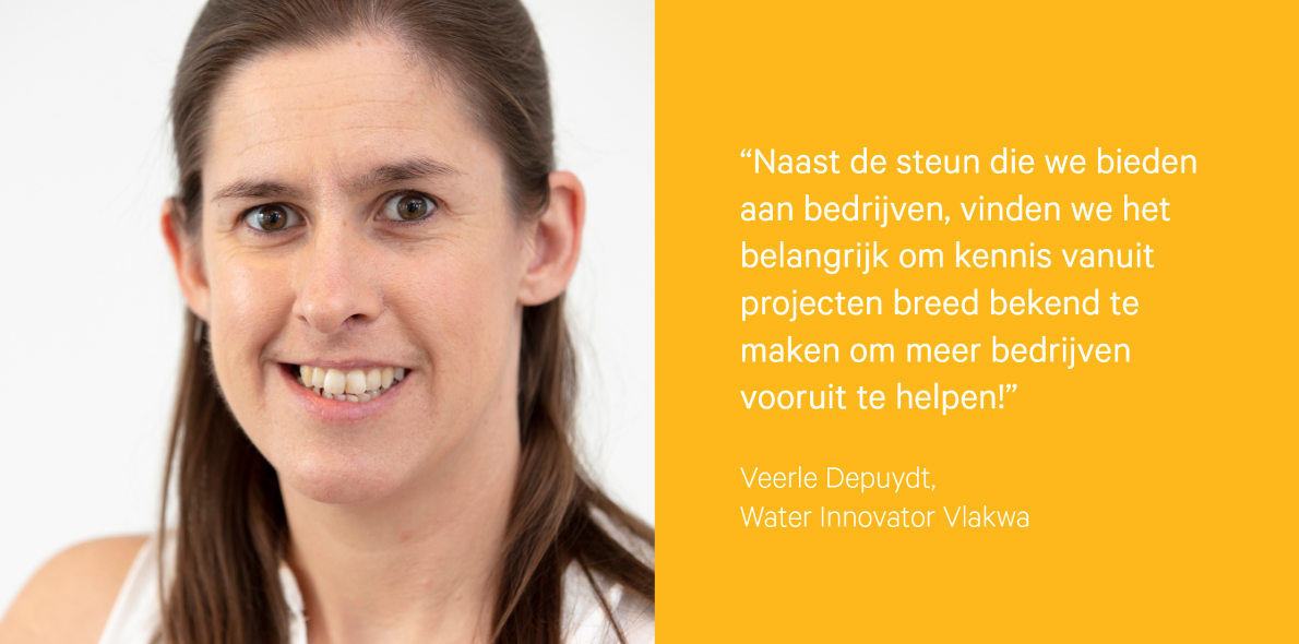 Veerle: “De rol van Vlakwa is heel ruim. Naast de steun die we bieden aan bedrijven tijdens het initiëren en/of de uitvoering van projecten, vinden we het belangrijk om kennis vanuit lopende projecten breed bekend te maken om meer bedrijven vooruit te helpen. Vandaag willen we zo veel mogelijk ondersteuning bieden naar bekendmaking van resultaten en de brochure is daar een mooi voorbeeld van.