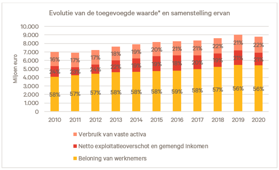 Bron: NBB, *exclusief belastingen minus subsidies op productie