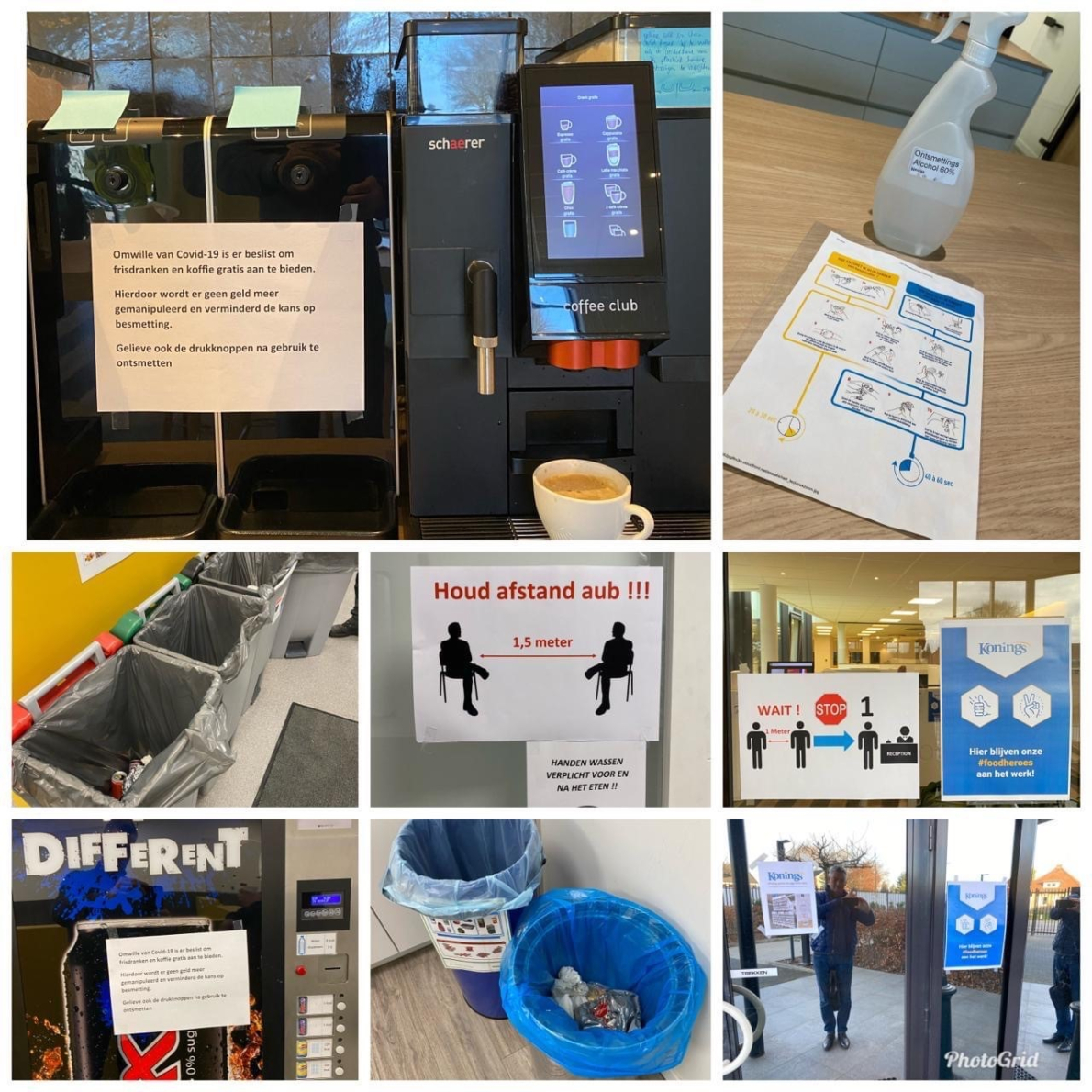 Hygiëne en reiniging zijn prioritair. Voedingsbedrijven voorzien daarom extra reiniging en ontsmettingsmateriaal. “Werkruimtes, kleedkamers, sanitaire ruimtes en pauzeruimtes worden zeer frequent en grondig schoongemaakt. Klinken, trapleuningen, toetsenborden, schermen en andere voorwerpen die mensen aanraken krijgen bovendien extra aandacht. Bedrijven voorzien ook ontsmettingskits en desinfecterende doekjes in de verschillende werkplaatsen.”