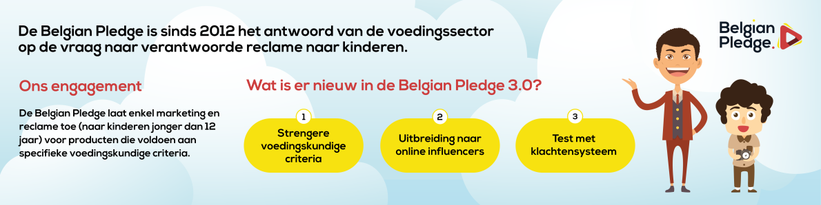 Omdat kinderen nog niet voldoende kritisch kunnen omgaan met reclame en marketing, beperken ondertekenaars van de Belgian Pledge hun marketing tot die voedingsproducten die voldoen aan specifieke voedingskundige criteria. Die voedingskundige criteria houden rekening met maximumgehaltes voor suikers, zout en verzadigde vetten en vereisen tegelijkertijd een verbeterde productsamenstelling. In de Belgian Pledge 3.0 worden die criteria opnieuw strenger.