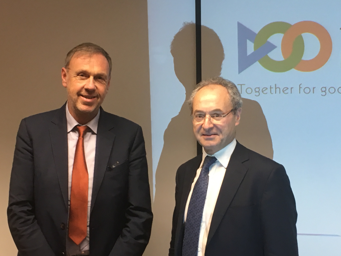 Georges Hanot (l), onafhankelijk voorzitter governance comité code faire handelsrelaties van het Belgisch ketenoverleg agrovoeding en Michael Hutchings (r), onafhankelijk voorzitter European Supply Chain Initiative