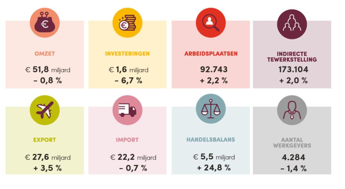 De voedingsindustrie bleef ook in 2018 de grootste industriële sector van België qua omzet, investeringen en werkgelegenheid, maar ziet enkele zorgwekkende tendensen opduiken. Hoewel de export het goed doet, stijgt de uitvoer niet zo hard als de voorbije jaren (+7,5% in 2017, gemiddeld +5% over de laatste 10 jaren). En terwijl de omzet van de rest van de Belgische industrie stijgt, daalt de globale omzet van de voedingsindustrie voor het eerst in jaren tot 51,8 miljard euro, een lichte daling van 0,8% ten opzichte van 2017. Na twee recordjaren liepen in 2018 de investeringen bij voedingsbedrijven terug met 6,7%. Diezelfde trend zien we ook bij andere verwerkende sectoren, wat er wellicht op wijst dat de grote investeringsgolf van de afgelopen jaren stilaan lijkt te stagneren.