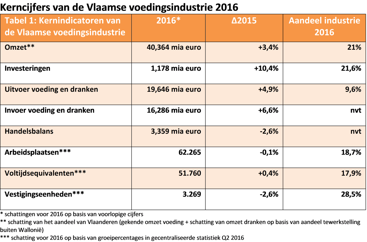 De Vlaamse voedingsindustrie blijft ook in 2016 de grootste én een van de belangrijkste industriële sectoren.