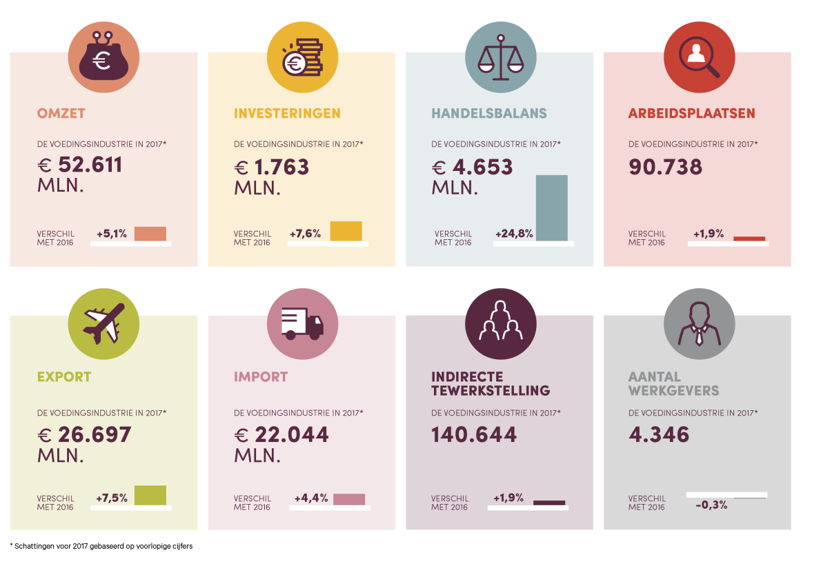 Het economisch jaarverslag van de Belgische voedingsindustrie geeft een erg dubbel beeld. De omzet, export, investeringen en jobs stijgen naar recordhoogtes maar de afzet van Belgische producten op de eigen markt staat steeds meer onder druk door de opeenstapeling van taksen, heffingen en bijdragen.