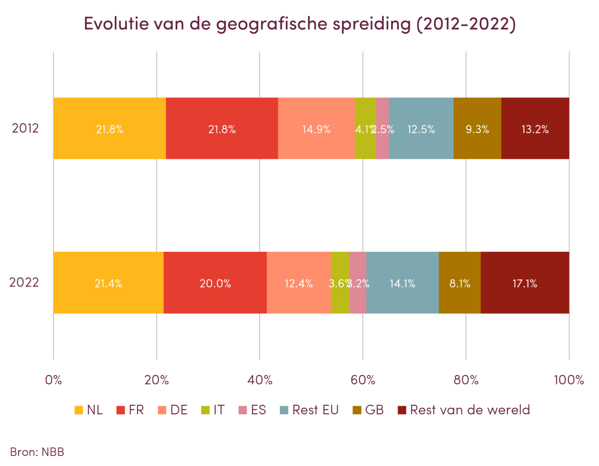 Het Verenigd Koninkrijk zag zijn aandeel met 1,2 pp dalen. Een groot deel van deze relatieve daling vond plaats in 2016, het jaar van het Brexit-referendum, en in 2017.